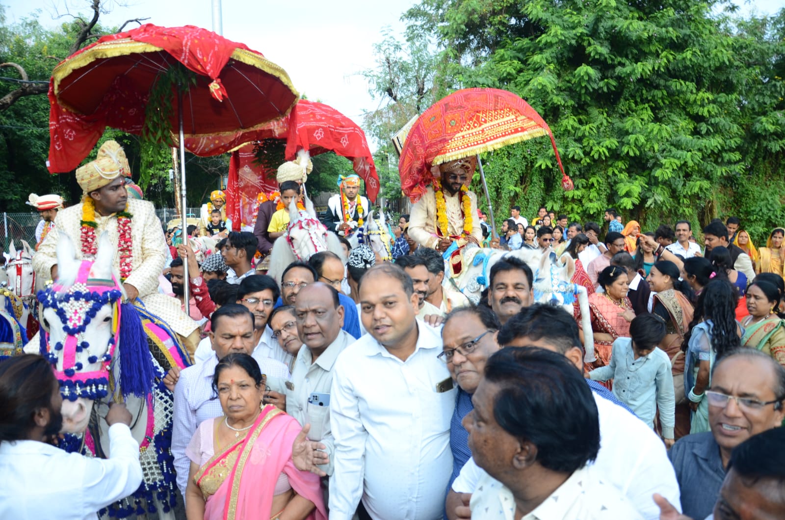 श्री इंदौर महानगर अग्रवाल वाल समाज की ओर से संयोजक राजेश कुंजीलाल गोयल, अरविंद बागड़ी एवं नंदकिशोर कंदोई ने बताया कि  शुभकारज गार्डन पर सुबह गणेश पूजन के साथ उत्सव का शुभारंभ हुआ। दूर-दूर से आए वर-वधू पक्ष के मेहमानों  पूरे उल्लास के साथ परंपरागत रस्मों का पालन किया। शहर के गणमान्य समाजसेवी बंधुओं के आतिथ्य में संध्या को वर-वधू पक्षों के बीच सामेला हुआ तो रिमझिम फुहारों के बीच उत्सवी महक दौड़ गई। उधर घोड़ियों पर सवार दूल्हे एवं बग्घियों में बैठी सकुचाती दुल्हनों का काफिला बैंडबाजों के साथ विवाह स्थल पहुंचा, जहां 11 तोरण द्वार, 11 लग्नवेदी, 11 मंडप एवं विवाह संपन्न कराने के लिए आचार्य पं. संतोष शास्त्री के निर्देशन में 11 विद्वान पंडितों की व्यवस्था की गई थी। तोरण की बेला में हजारों समाजबंधु मौजूद थे, जिन्होंने पुष्प वर्षा कर नवयुगलों के यशस्वी एवं मंगलमय जीवन की शुभकामनाएं समर्पित की।