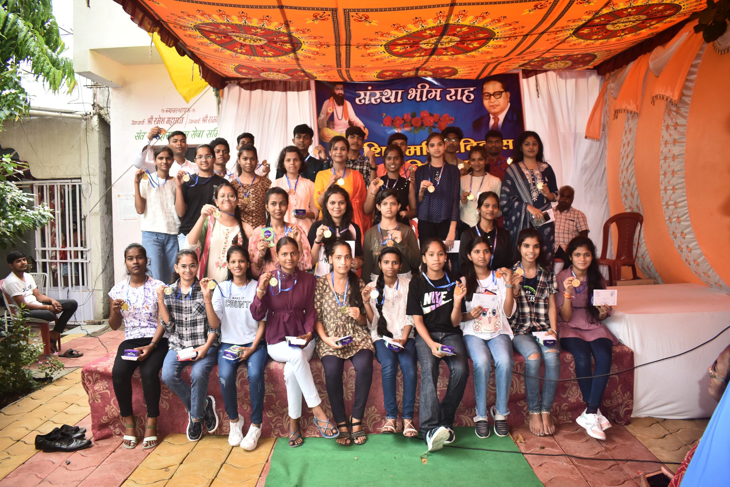 इंदौर। संत श्री गुरु रविदास अनुयायी समाज मित्र मंडल द्वारा 10 वी, 12वी में 91% वाले बच्चों 2100 रु , 90% , कम को 1100 रू, 80 % से कम को 501 रू एवं मेडल देकर संत रविदास धाम विजय नगर पर भीमराह संस्था के अध्यक्ष संतोष वानपुरी जी ने नगद राशि पुरूस्कार से 71 बालक बालिकाओं को सम्मानित किया गया कार्यक्रम का शुभारंभ गुरु की आरती एवं अरदास पाठ मुख्य अतिथि आचार्य, श्री रमेश जी महाराज (हरियाणा वाले )लक्ष्मण दास जी महाराज , पुजारी श्री गोलियां महाराज कर किया गया स्वागत कुलदीप वानपुरी , सागर वानपुरी, हर्ष विरदे ने किया *संचालन* मिथिलेश कैमरे जी, विजय जाटव जी, ने किया आभार कु .कुमकुम वानपुरी माना